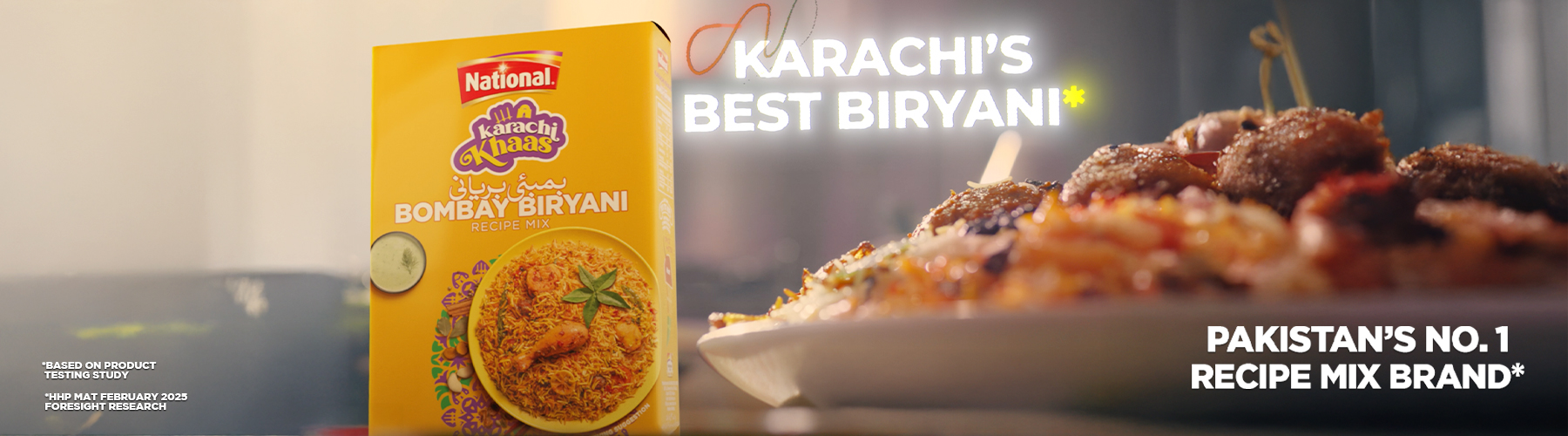 Presenting our latest communication for National Food's, where Karachi Khaas Bombay Biryani has claimed the victorious title. So, foodies, when are you trying Karachi's Best Biryani at home?